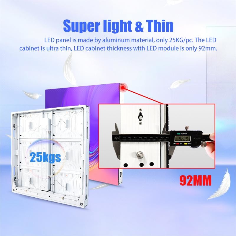 এটি একটি কাস্টমাইজড ক্যাবিনেট সাইজ অফার করে, যার কালার টেম্পারেচার 6500K এবং পিক্সেল পিচ 5.7/6.6/8/10mm পর্যন্ত।